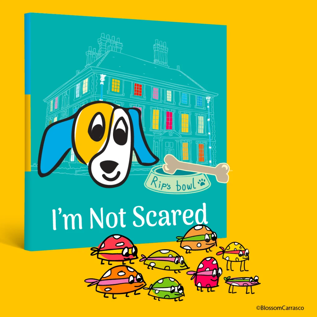 “I’m Not Scared” has been written and illustrated by me. It is set in a real Jacobean Manor house and estate in North London, the Forty Hall Estate. While the story is a fictional one, it is about a real dog called Rip, who was a pet of the last family that lived there. The story is set in real locations and features characters that can be found or documented in the house as well as amongst the surrounding woodlands and lakes of the estate.